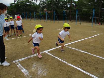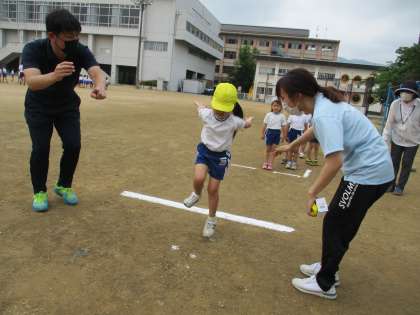 「鳥さんのポーズで跳ぼうね」「最後まで前を向いて走るよ」と、コツを教えてもらいながら、一生懸命に取り組んでいましたよ。
