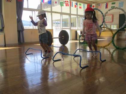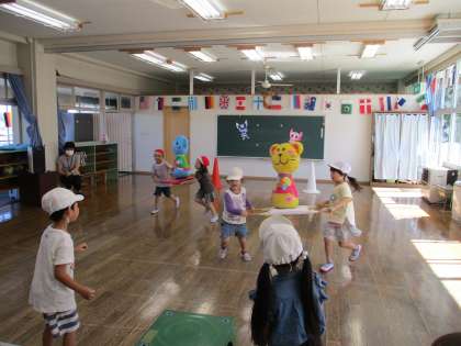 今年度は、2階のわくわくルームで行うことになったミニ運動会。22日に予行練習を終え、いよいよ明日が本番です。