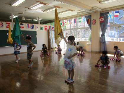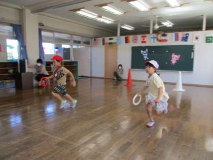今日が最後の練習になりました。リズム(フラッグ・シンバル・ポンポン)は、しっかりと手を伸ばし、リズムに合わせて旗やポンポンを振ることができるようになりました。リレーにも力が入って勝ちたい気持ちが十分に見られました。明日のミニ運動会。ピカピカの金メダルを目指して、みんなで頑張ろね。
