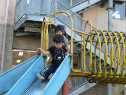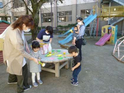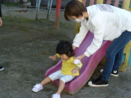 ママと一緒にシャボン玉をしたり、滑り台をしたり・・・青空と吹く風がとても気持ちよかったですね。