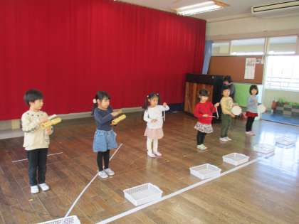 なかよし発表会に向けて、鼓隊や劇遊び・歌や楽器演奏等毎日意欲的に取り組んでいる子供たち。「もうすぐ発表会だね。ちょっとだけドキドキするね」「みんなで一緒に言うセリフを忘れないようにしないと」と、少しずつ緊張感が出てきた様子です。