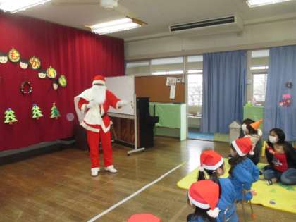 その後♪まってますクリスマス♪の歌を踊ったり、サンタさんからどんなプレゼントが届いてほしいか話をしたりしていると、サンタさんが登場!大喜びの子供たちでした。