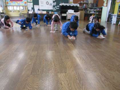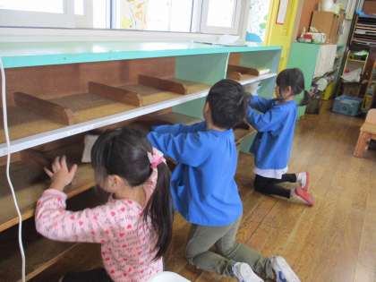 終業式後には、保育室の大掃除をしました。「(自分のお道具箱が)ピカピカになった!」と、自分の棚を拭いた後にはスッキリした表情が見られました。これで気持ちよく3学期が迎えられそうです。ご家庭でも、子供たちができるお手伝いを任せてみてくださいね。