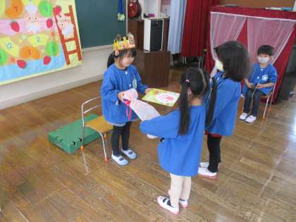 4月生まれの友達の誕生会をしました。みんなで「おめでとう」と言ったり、歌を歌ったりしてお祝いしました。6歳になった友達は「大きくなったら何になりたいか、まだ考え中です」と…。いろいろなことを経験して見つけてほしいです。