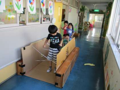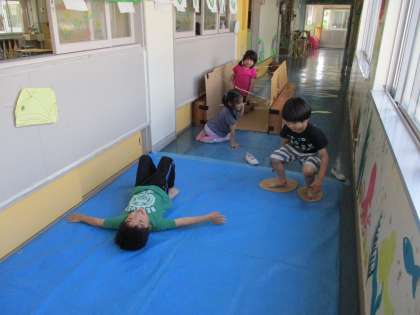5月の終わりから、うさぎ組みんなでどんな遊びの場をつくって遊ぶか相談し”忍者”をテーマに修行の場をつくることになりました。