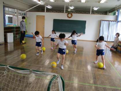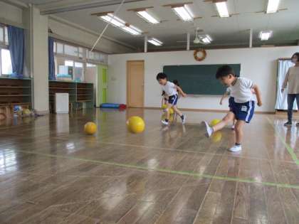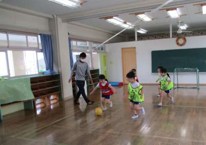 カターレ富山のコーチによるサッカー教室がありました。空間を広く使う動き方からドリブル、シュートを楽しく教えていただき、チームに分かれて試合も行いました。うまくドリブルできたり、シュートが決まったりするとサッカーが面白く、好きになった子供たちでした。