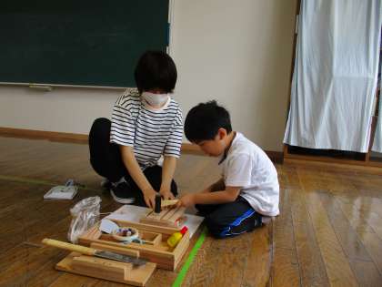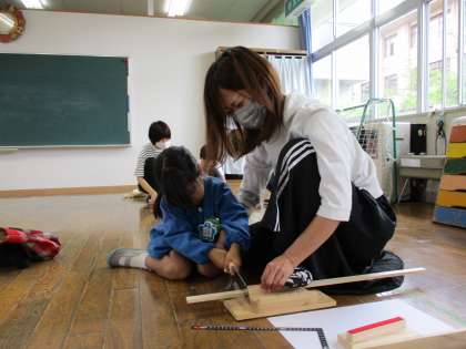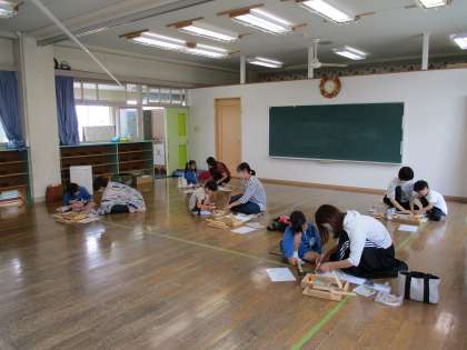 みんな楽しそうにお母さんと一緒に自分だけの木琴をつくっていました。