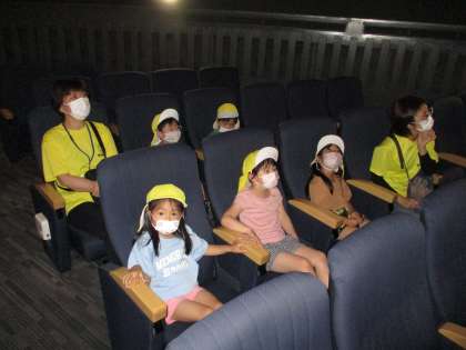 楽しみにしていたプラネタリウム観覧では、照明が暗くなり、星が浮かび上がると「わーっ、星がたくさん出てきたね」「キラキラしてきれいだね」と喜んでいました。