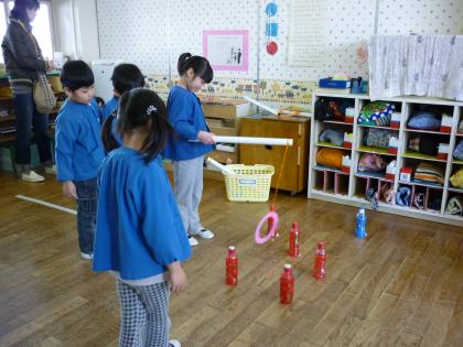 たんぽぽ組では豆つまみやペットボトル輪投げがありました。豆つまみでは焦るとなかなか豆がつまめず苦戦していました。ひまわり組ではエコバックを作りました。世界に一つしかない地球に優しいエコバックができあがりました。