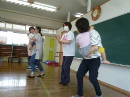ママの背中やひざに乗せてもらい、リズムに合わせて♪♪♪