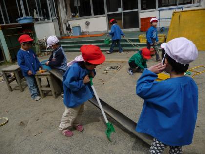 年中組さんの中には、「先生、流しそうめんするから食べにきて・・・」と誘ってくれたお友達がいました。担任の先生に聞くと「この遊びが、この幼稚園の伝統なんです」と教えてくれました。