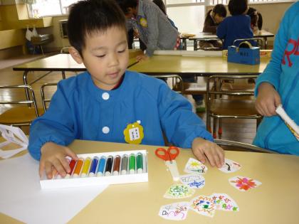 5歳児さんは、憧れの広い部屋で、自分のしたい遊びにじっくり挑戦。