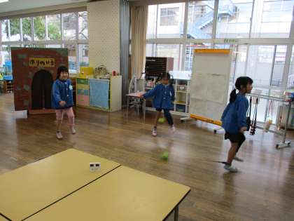 発表会でかえるスキップ(ステップスキップ)をみんなに見てもらいたい!と毎日練習しています。新記録が出ると「ヤッター!!」と大喜びで記録ボードに記録を書いています。