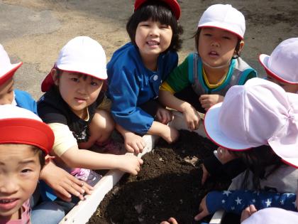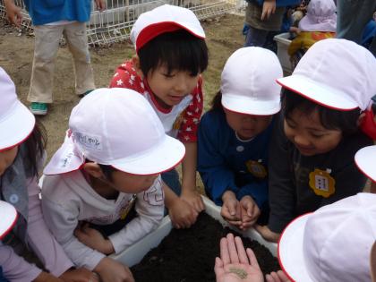 人参の種は、白くて小さくて・・・「本当にこれで人参ができるのかな???」と不思議そうな子どもたち。