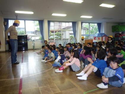 4歳・5歳児さんは、さすが”お・は・し・も”の約束をちゃんと守って避難できました。