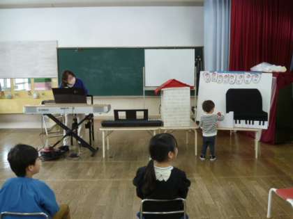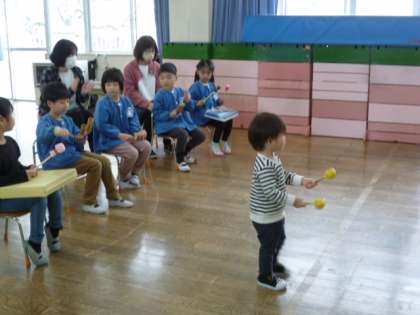 今日は、坂本有里先生を講師にお迎えし、園児と一緒に「リトミック」をしました。