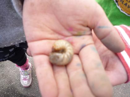 土の中からでてきたかわいい虫たちを「育てたーい」と。