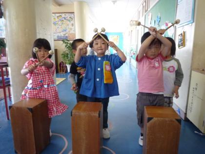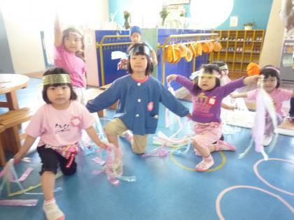 その踊りを見ていた4歳児さん。「私たちも交ぜて」さすが4歳児さん。一気にジャンピングが踊りになってきました。