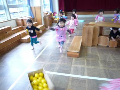 早速、追いかけ玉入れ。走って走って汗びっしょり。