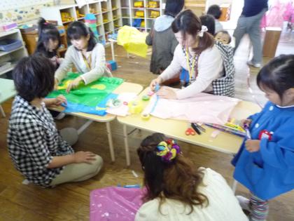 お部屋のなかでは、ママやパパと一緒に世界に一つしかないドレス作り。