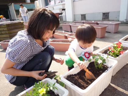 幼稚園が素敵なお花でいっぱいになるように、これからもママと一緒にお花の生長を見守ってくださいね。