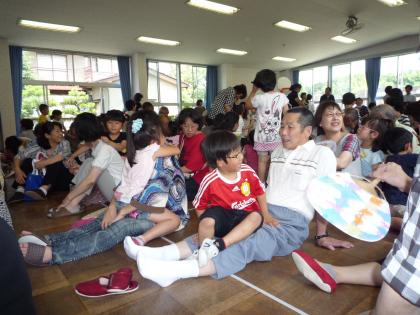 第二部は、みんなでお遊戯室に集まって、日頃している手遊びや体操や歌などを披露しました。