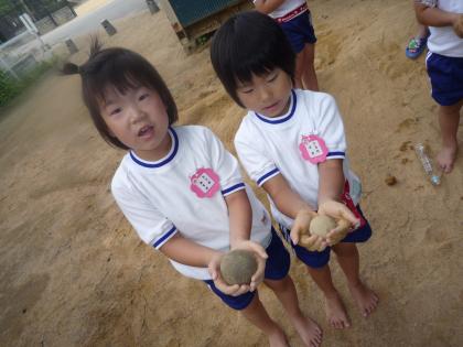 年中組さんは、泥団子作りに挑戦しました。これは、大変根気のいる作業でしたが、それだけに完成した喜びは大きかったようです。