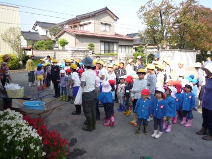 今日はお芋ほり。小学校の5年生のお兄さんやお姉さんと一緒です。