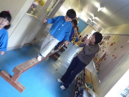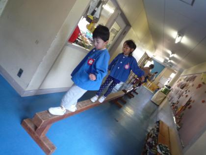 今日は、黙々と汗びっしょりになるまで、挑戦していたお友達。そばを通る先生たちやお母さんたちに誉めてもらって、万遍の笑顔を見せてくれました。