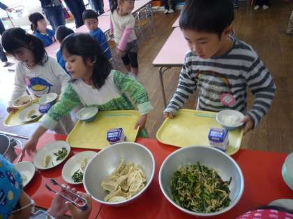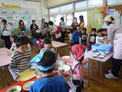 好き嫌いはしていないかな?など、給食の様子を見ていただきました。