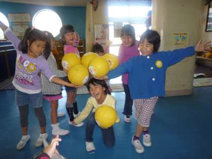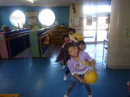 「先生、ボールするよ」「ちゃんとかっこよくしようね」「いいよ。そろってる」「お客さん招待しよう」「みんな呼んでくるね」「準備しててね」「今からボールをします」・・・5歳児年長組の女の子が毎日張り切って、ボールの踊りを自分たちで工夫し作り上げていきました。