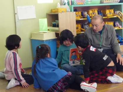 午前中は小学校の先生が、幼稚園の5歳児のジャンボカルタ取りに補助の先生として入ってくださいました。
