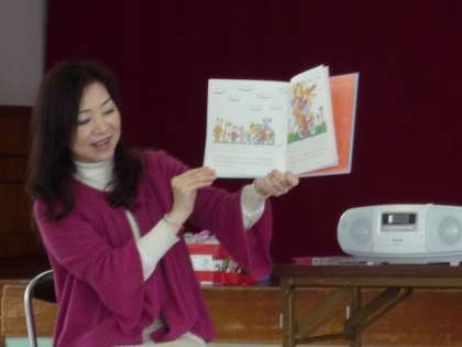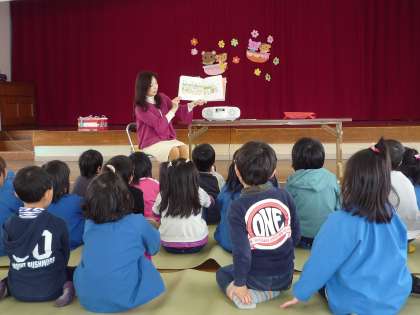 幼稚園では、校下の荒川先生に絵本の読み聞かせをしていただいています。