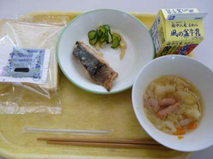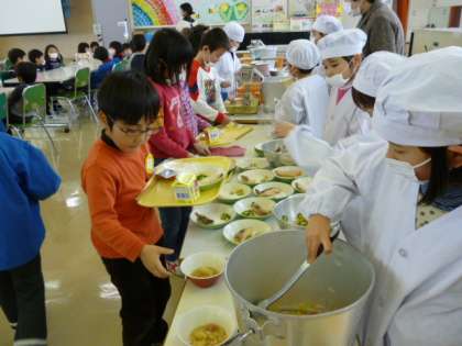 今日は、隣接の大沢野小学校に給食交流会に行ってきました。