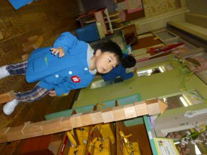 また、背の高さよりも高く積み木を積んで「すごい、まるでスカイツリーみたいだね」と大喜びしている姿も見られました。