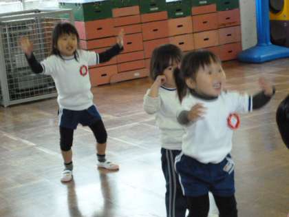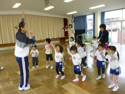 3歳児さんは、初めての体操教室でしたが、元気にアンパンマン体操やかけっこを楽しんでいました。