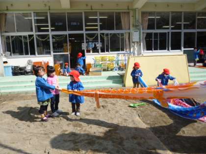 「伸ばして、伸ばして・・・」「こいのぼりって大きいね」「あれ、誰かこいのぼりに乗っているよ」など、いろいろな声が聞こえてきました。
