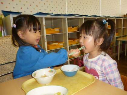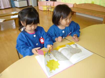 3歳児さんは、入園して一ヶ月。幼稚園にもなれ、少しずつお友達ともかかわって遊べるようになりました。