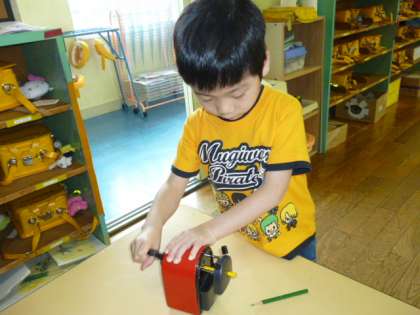 「鉛筆削って・・・」と、言ってきた女の子、「鉛筆何で削る?」「どこにあるの?」「どうやって削るの?」「自分でやってごらん」・・・