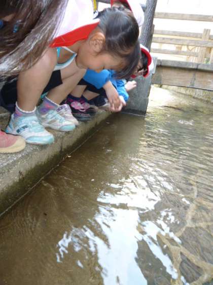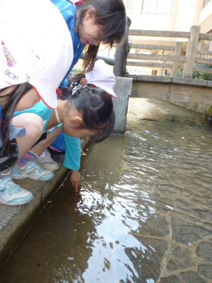 幼稚園と小学校の間にあるせせらぎに水が入りました。