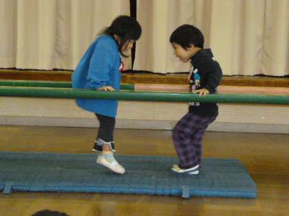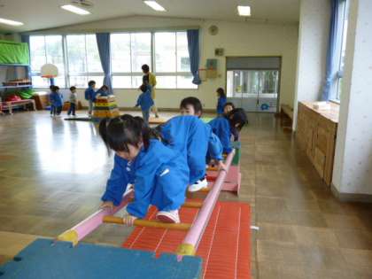 遊戯室のいろんなコーナーでジャンプしたり、よじ登ったり「先生おなかすいた」という声もたくさん聞かれました。