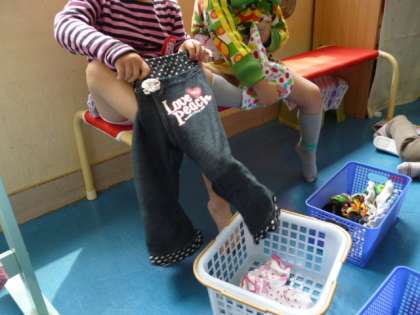 そして今は、自分でパンツをはくところから脱がずにおしっこができるように援助しています。
