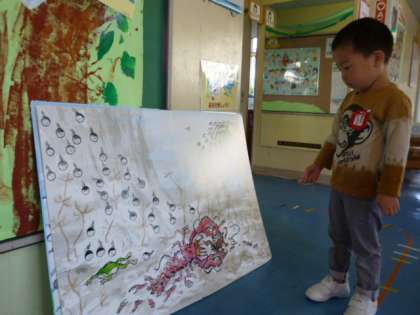 そんなおたまじゃくしの卵をじっと見入っていた来客の方が「最近は、小学校で使うノートの表紙も、カブトムシやトンボは気持ち悪いから、花などにしてくださいという要望があり、変わったんですよ。だから幼稚園でこんなふうに小さいころからいろんな小動物に触れさせてもらったらいいですよね」と言っていかれました。