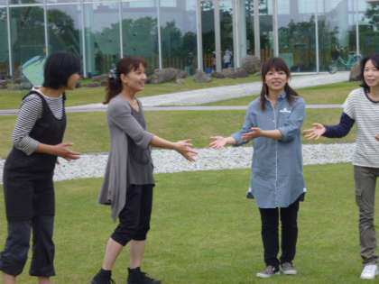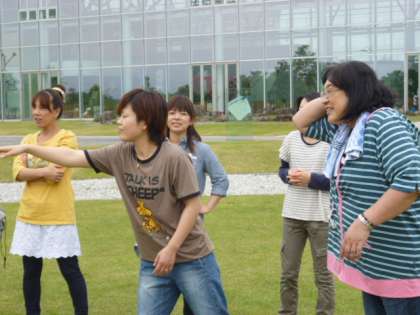 二つ目のゲームは、記憶ゲーム。まず、円になり右側と左側のお母さんを覚えます。それを6回繰り返し・・・なんと???「はい、じゃ、2回目の円を作ってみましょう」「えっ、覚えてない!!!」「どこ?どこ?」お母さんたちの真剣な顔。顔。顔。