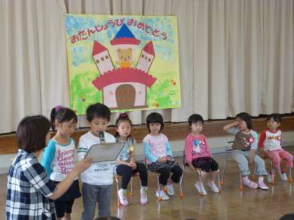 「今日は、たのしい誕生会。みんなでお祝いいたしましょう。」で、始まったお誕生会。