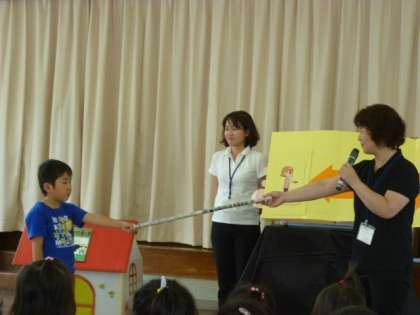 安全サポーターの方々から、不審者に声をかけられたときの対応の仕方を教えてもらいました。