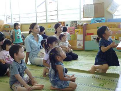 水遊びを楽しんだ後は、じっくり紙芝居に見入っていた子ども達でした。