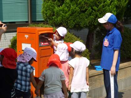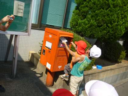 「私のおじいちゃん来てくれるかな」と心配そうに投函するお友達や、「届かないの?」と優しく抱っこして投函させてあげている年長組さんでした。