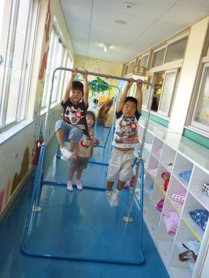 4歳児さんは、日ごろ鍛えてきた腕の力の試したり、なでしこジャパンに負けないシュートを見せたり・・・運動会では、こんな姿も見ていただきたいと思っています。