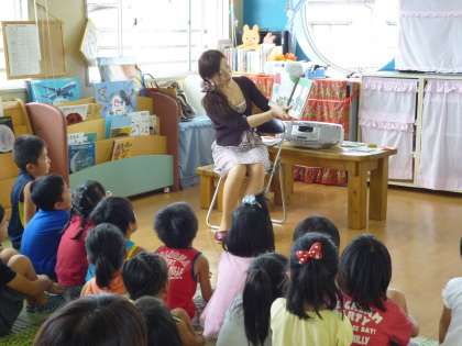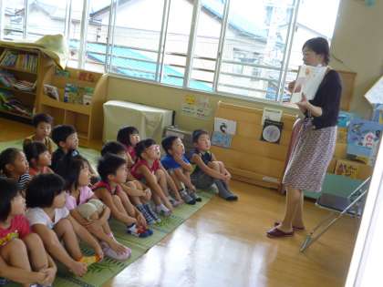 幼稚園でも、運動会の練習で身体を動かした後は、じっくり絵本に親しむ時間も・・・幼児期に出会った絵本はずっと大人になっても心のなかに残っていくようです。